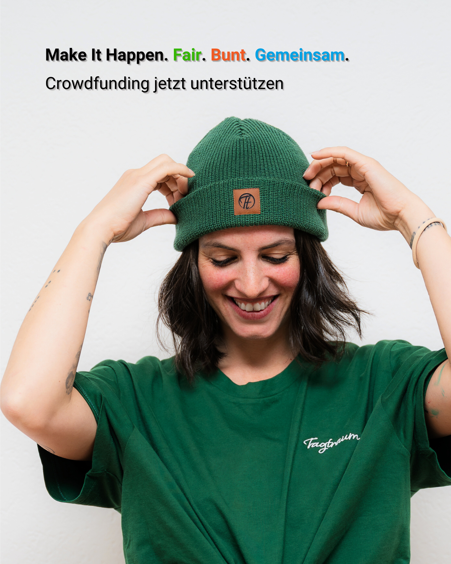 Tagtraum Clothing – das sind wir: ein junges Schweizer Label mit Herz, Idee und ganz viel Tatendrang. Gegründet aus dem Wunsch heraus, nachhaltige Kleidung zu kreieren, die sich nicht nur gut anfühlt, sondern auch Gutes tut. Für dich. Für uns. Für den Planeten.