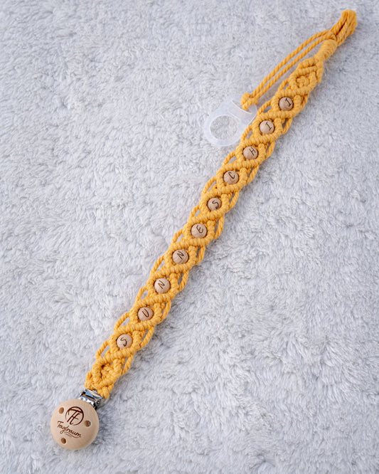 Handgefertigte Makramee Schnullerkette "Sunneschii" Gelb/Natur